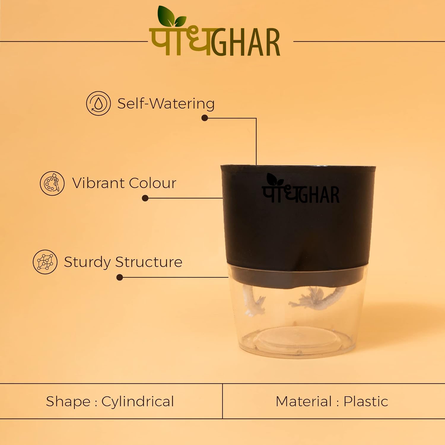 The long-lasting beauty and enhanced durability of these self-watering planters are guaranteed by their construction from high-quality, durable white plastic. Outdoors, these planters will endure a wide range of weather conditions thanks to their robust build, which also makes them ideal for daily use. Podhghar ensures that these planters remain strong and reliable, no matter the environment.